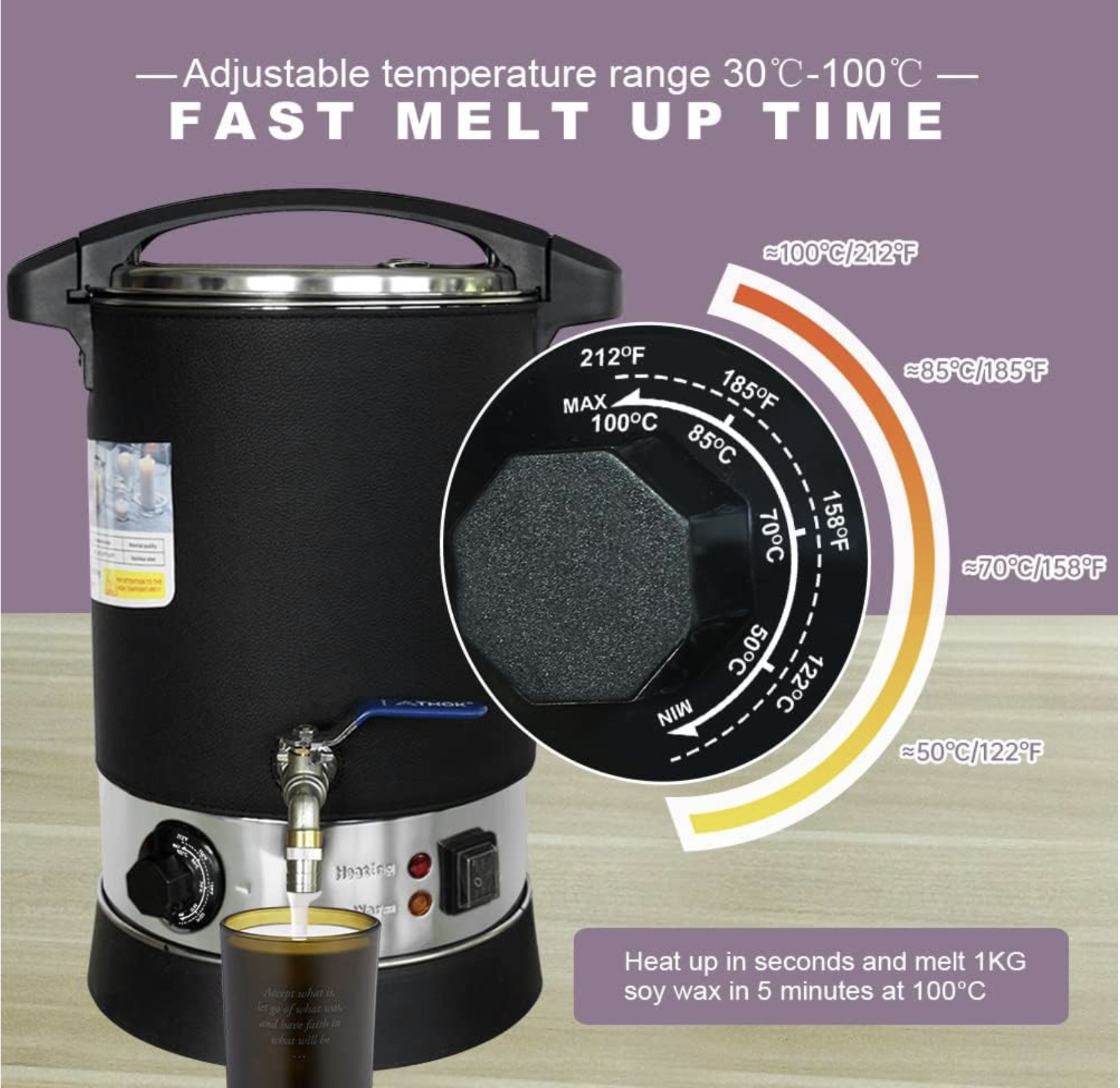 Ready to scale your candle business beyond melting wax in a double boiler over your stove top? This wax melter was just what I needed. It’s large enough to be efficient, but small enough to find a space in my home studio.